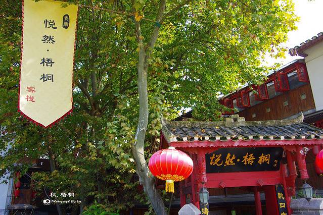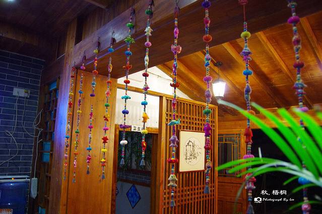 青岩悦然梧桐客栈,位于青岩古镇北门外,客栈内耸立着三颗百年梧桐,笔直伸向天空,向外伸展的梧桐枝干与阁楼、屋瓦、天台紧密相生,融为一体。客栈四周有农田与溪流环绕,伴有昆虫、蛙声、蝉鸣,环境清幽,一副世外桃源的派头。客栈内装潢古朴精致、韵味十足,餐厅、休息区、公共区域、房间内部均古色古香,充满热爱生活的格调。我们之前致电客栈老板询问相关事宜时,老板自信满满地说:来住过的人绝不后悔。在院内留言墙上可以看到有很多微博名人来此住过并留影签名。