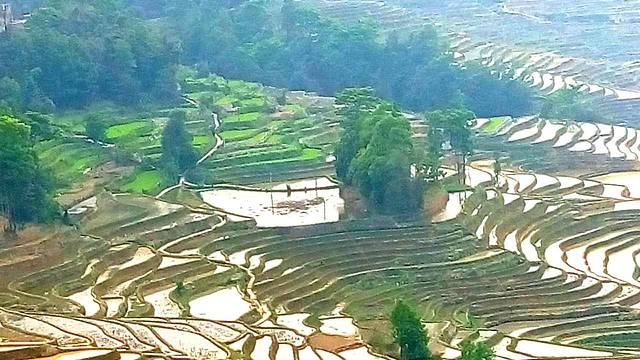 梯田只是田,千余年来红河哈尼族人赖以为生计的田。即使近年间引来了无数眼球和镜头以后,也没有增添一砖一瓦,一草一花的修饰,然而竟能成为闻名世界的风景,这一定有其独特的魅力。所以,来云南前就计划,一定要去看看元阳的梯田。