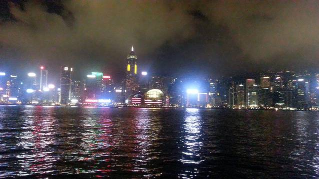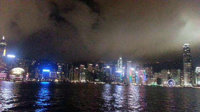 八点在维港看咏香江,可是云层太厚了,看的不是很清楚。