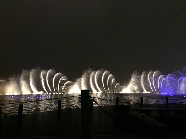 西湖的音乐喷泉,去早了有免费的座位,值得一看