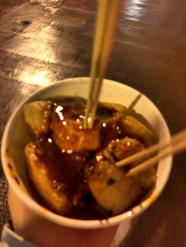 上海的臭豆腐,加了辣椒和酸甜酱,虽然有点油腻,但是味道真的很棒
