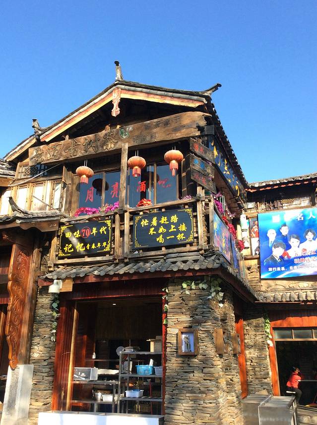刚刚到古镇门口,特色的酒吧就呈现眼帘了,这个点就已经开唱了,不过我没进去,就在他楼下的小吃店吃了点小吃