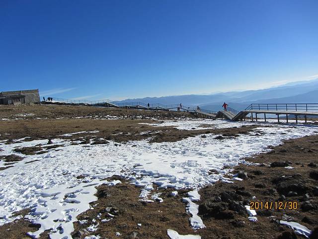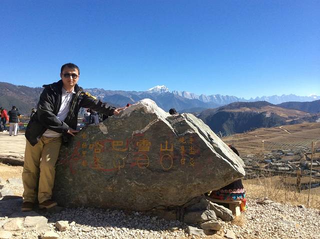 快到哈巴雪山的时候,导游会提前叫醒大家。这是哈巴雪山对面的一个观景台。下了车就明显可以感受到高原气息了,明媚的阳光,清新的空气,同队刚好找个也是同样单身游的一个兄弟,大家一起帮忙互相拍照留恋