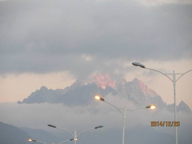 一出丽江就能远远望见玉龙雪山,在旭日的映照下格外神秘。