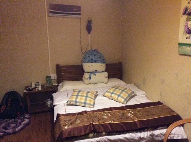 忘记名字是什么了,不过价格真心便宜50元,单间,不过都有,就是没有空调,但有电热毯,一个人就将就了