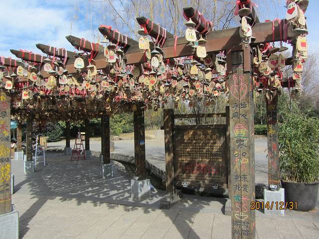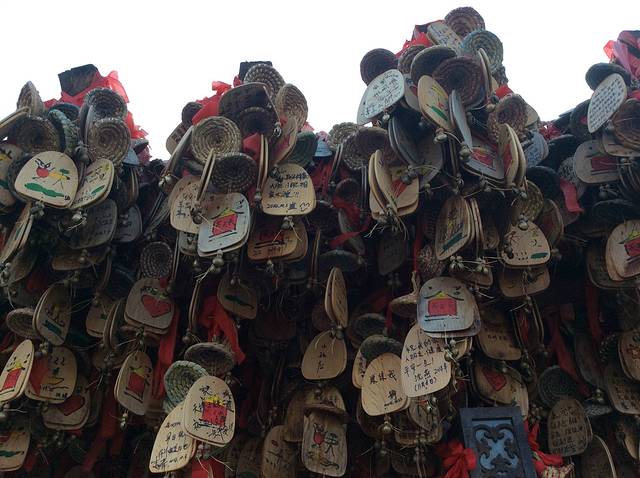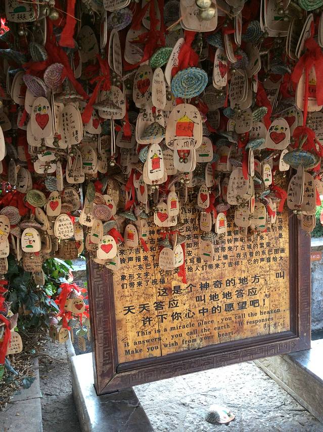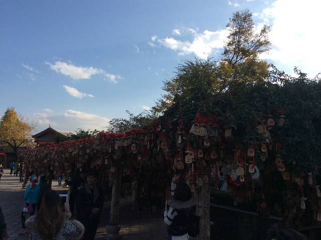 进入古镇后,最显眼的就是这一排许愿树,满满的都是心愿