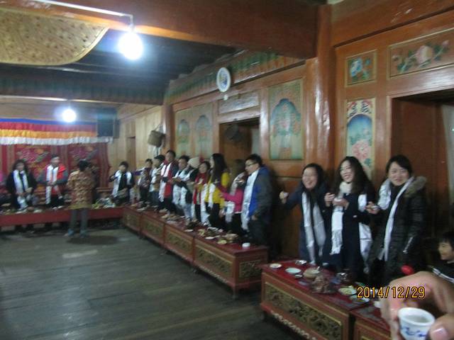 因为元旦都放假了,只有村里文化最高的卓玛(高中毕业),为我们讲解藏民文化。包括进藏民家要先迈右脚,不能踩踏藏民家的门槛,家里不准拍照等等。还有一个就是猜一下藏民心中最大的佛是谁?答案就是我们伟大领袖毛主席。那可是供在每个藏民家里最高位置的。都不准用手去指的。让一个从奴隶社会直接过渡到社会主义社会的人,可见还是多么重要的。