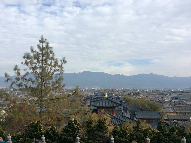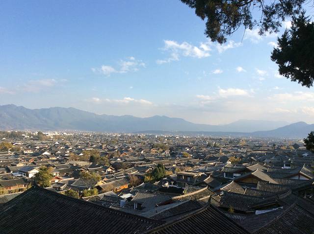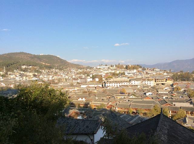 狮子山是丽江古镇最高的山。我没有先进入深巷,而是出门,沿着门口的狮子山往上走,我想趁着夕阳可以看看丽江古镇的全景