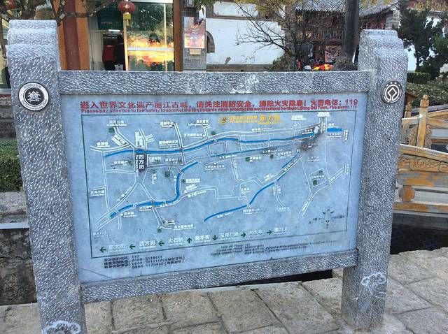 丽江古镇地图,三条小河,三条酒吧街,如果你迷路了,就顺着水流的方向走,马上就能找到大水车