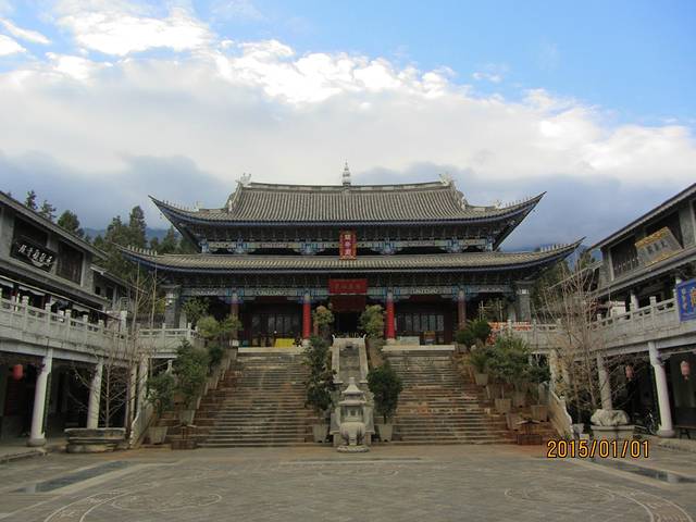 不过还真是挺喜欢木府的,文化都很不错,特别是它的地理位置:左青龙(玉龙雪山)、右白虎(老虎山)、后玄武(狮子山)、前面是佘山和龟山。