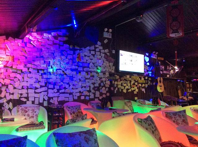 晚上是2014年最后的一天,我在三条酒吧街逛了个遍,各家都在做促销,可是我不喜欢太吵闹,我选择了山上的一个静吧。点了4瓶啤酒,在一个角落坐下,才发现旁边好几桌都是外国朋友。主唱是一位年轻的女孩,说实话,歌确实唱的不错。酒吧的墙上贴满了便签贴,都是来过的朋友留下的,我也会加入这个行列。不过可惜的是晚上11点丽江古镇就开始宵禁了,说是城管管得严,一会儿就安静下来了,客人陆陆续续的也都离开了,而我还有两瓶酒没喝,也有点着急了。老板好像看出来了,走过来跟我搭话。才知道,他比我就大三四岁左右,主唱是他女朋友,原来他们之前也在深圳酒吧唱歌,后来感觉压力大,就去了丽江,慢慢习惯了那边的生活,就合计着盘了一个酒吧,把父母也都结了过去。听着我就羡慕极了。