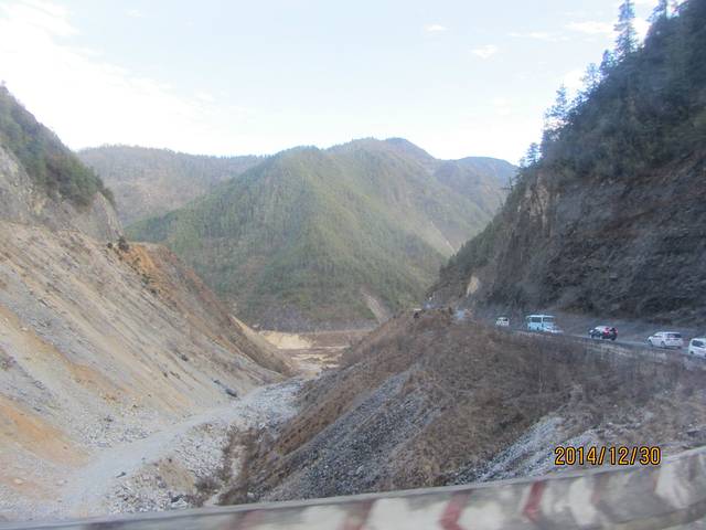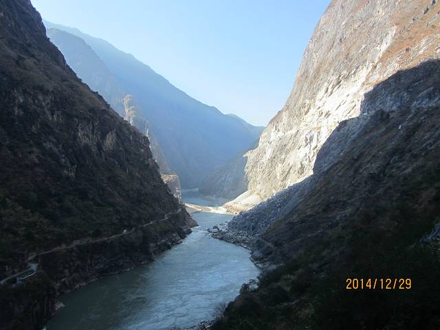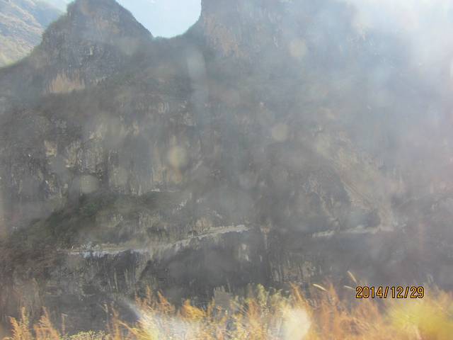 对面就是传说中的茶马古道,都是在崖体间开凿出来的