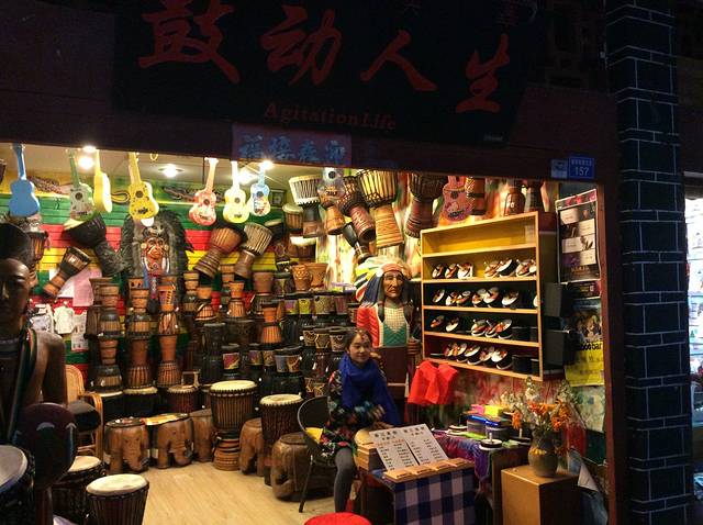 晚上街头很多卖这种手鼓的,门口还有美女唱演的