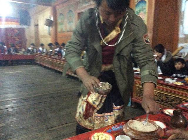 在一个酒店的二楼,反正很多旅行团都在这里,质量就别说了,因为导游会开玩笑似得不停的告诉你慢点吃,因为高原饭做不熟,有时候会硬得像子弹。萝卜南瓜……反正我吃饱就行