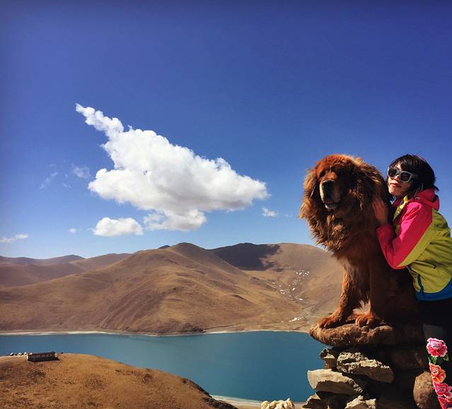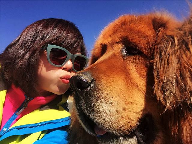 藏獒野性大,即使被驯化,也难免暴脾气,所以合影的藏獒一般都不大,这只一岁半。