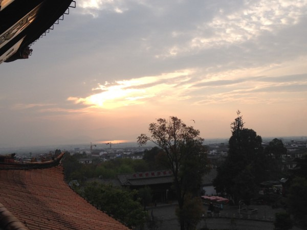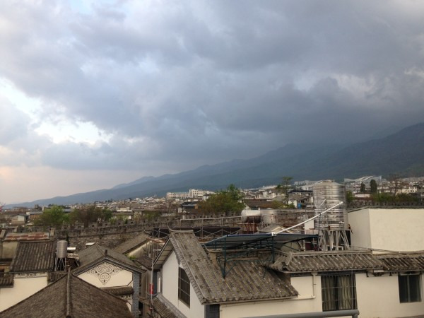 天黑之前回到客栈,闲来无事便到三层天台看看。可以说整个大理之行最放松惬意的地方不是苍山,也不是洱海,更不是双廊,而是这个屋顶,坐在上面左手边是苍山,右手边是古城和洱海,云层很低,似乎伸手就能够到。