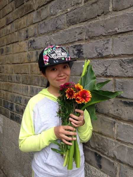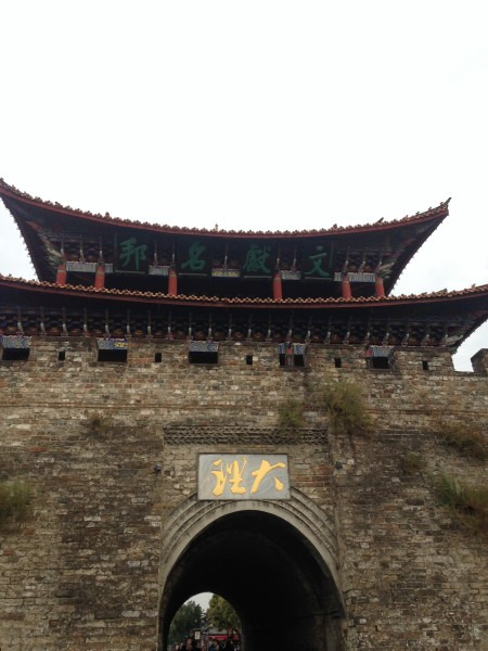 用过早餐(最有名的巍山耙肉饵丝),登上大理城楼看看风景,下了城楼正遇见一早去古城内卖鲜花的老奶奶,哈哈,当然是要买一些的。