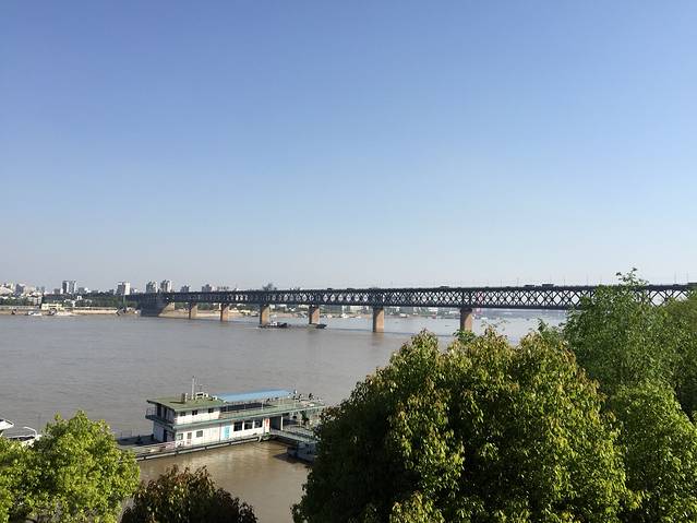 晴川阁的平台上很适合照相,这里可以看到长江大桥,且绿树葱葱视野很好