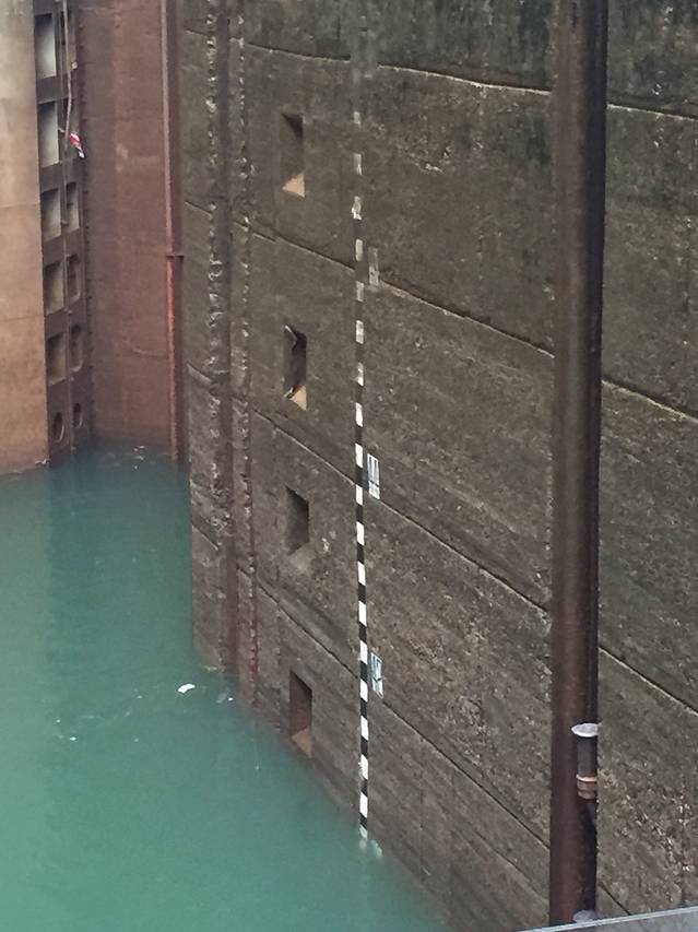 水位渐长时,两边有水位线标识,可以轻易看出水位在涨
