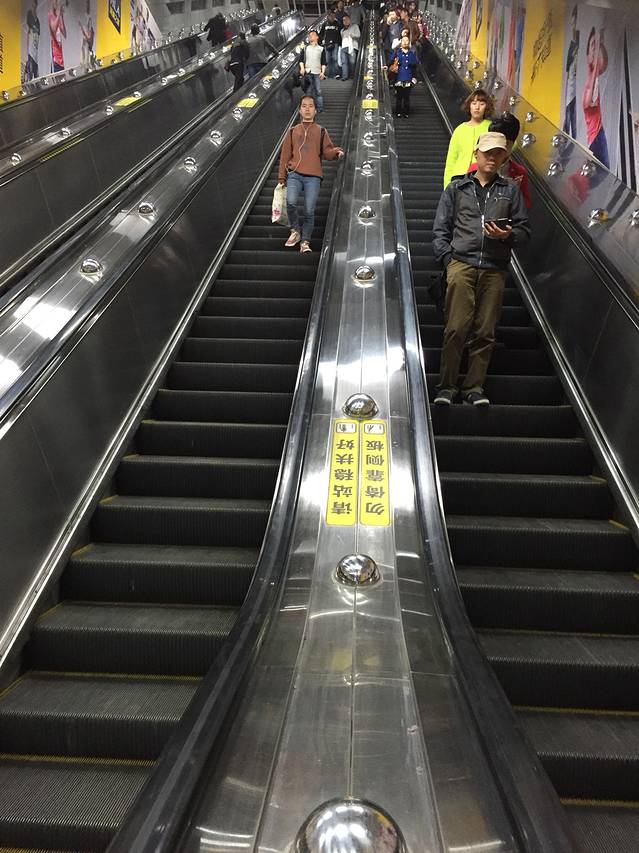 在这里吃完晚饭后我们决定体验一次武汉的地铁,坐地铁回酒店,地铁里的电梯实在太长!