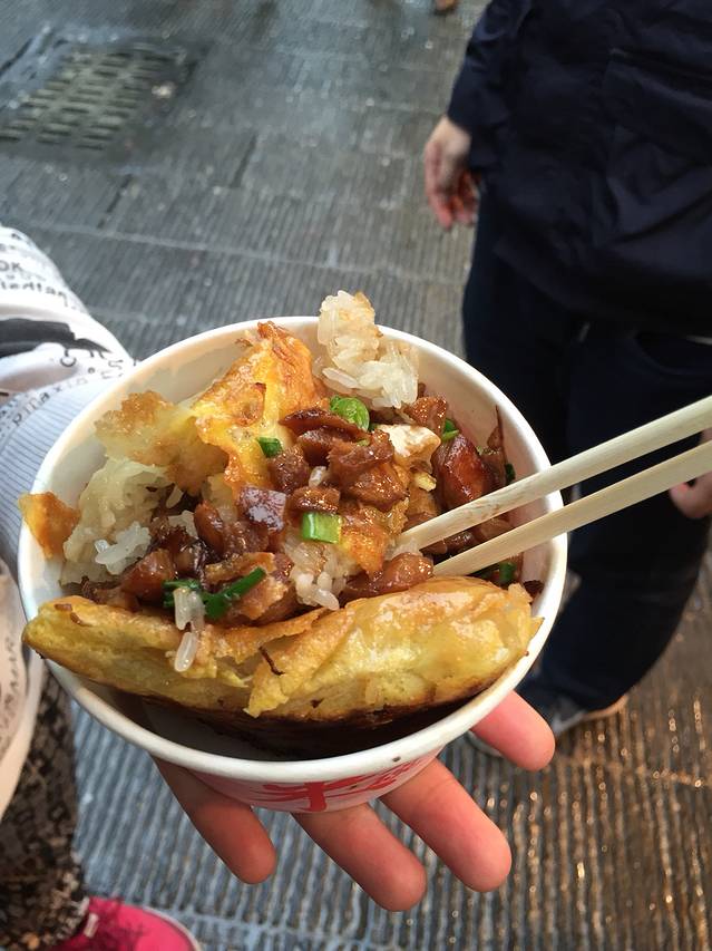 4、灌汤臭豆腐。忘记店名叫什么了,在老谦记豆丝和一品豆花旁边,看到很多人在排队于是我们也跟着排了。很一般不推荐。
