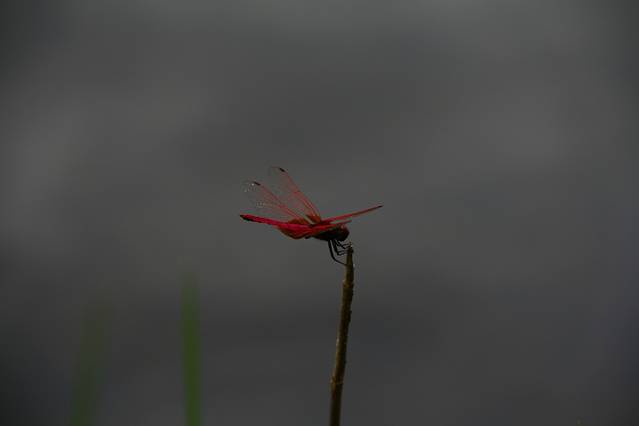 看到一只大大的红蜻蜓,太远,没法捉,就给她来了张特写。