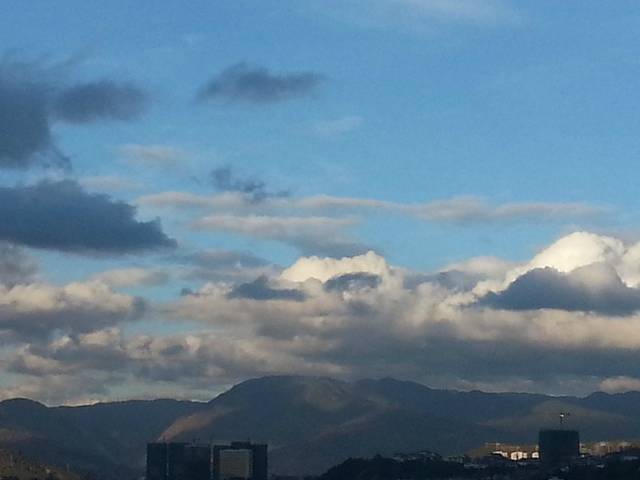 高速路休息区照相一张,天空开始变的美美的~