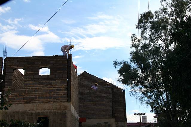 还在修建中的房子。蓝蓝的天空,感觉在这样的地方装修房子,都是一件幸福的事情。