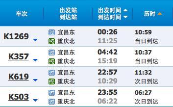 宜昌东-重庆北普通列车时间表