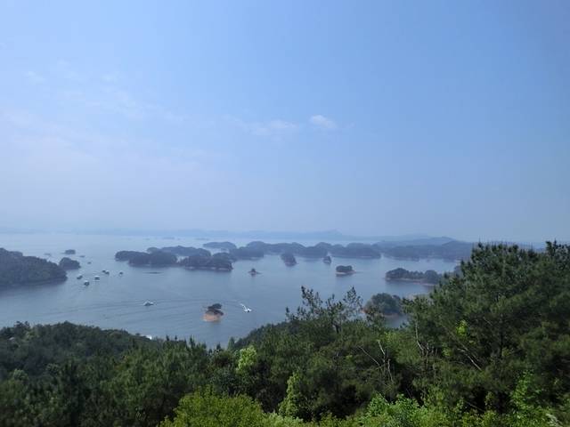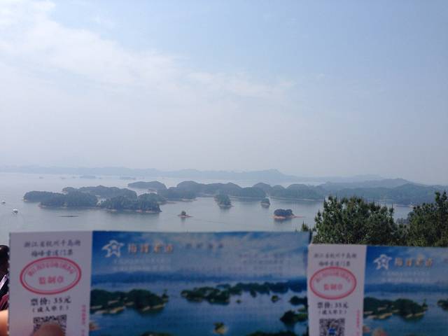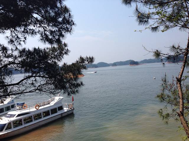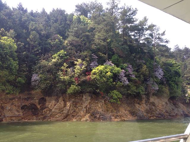 我在千岛湖乘游轮游览了三个岛,两人430元,第一个岛坐单程缆车35每人,第二个岛有个人妖表演我们放弃了,第三个岛卖特产孝母饼,好吧,我们承认我们不孝,没买。三个岛都很小,每个游览四十分钟就够了。我和gege一致认为还是远观比较美,游岛很无趣。每艘游船配一个导游,上船便开始推销缆车表演特产。其实千岛湖在我们眼里就是个大点的水库。