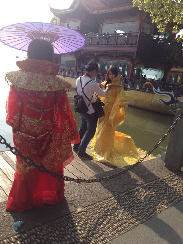 西湖美景~四月天呐~体力好可以环湖骑行一周,有自行车租车点,大概两小时时间,可以做船游湖。我们选择步行赏景。