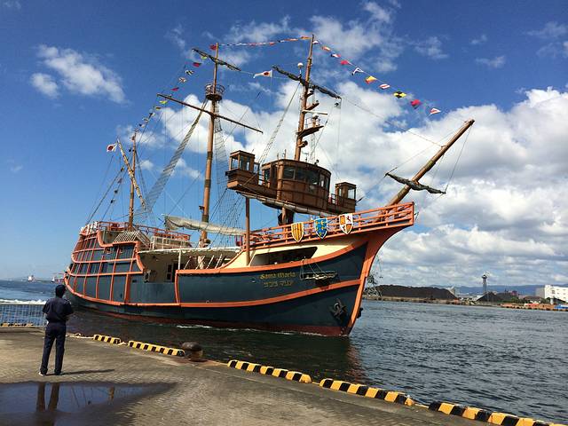 大阪港这里有海游馆、观光船和摩天轮! 今天天气又是超好,帝都人民就看看蓝天就觉得很满足了,所以甚是开心!摩天轮10点开始,海盗船11点开始第一班。先做的摩天轮,买了摩天轮和海盗船的套票,便宜300日元。
