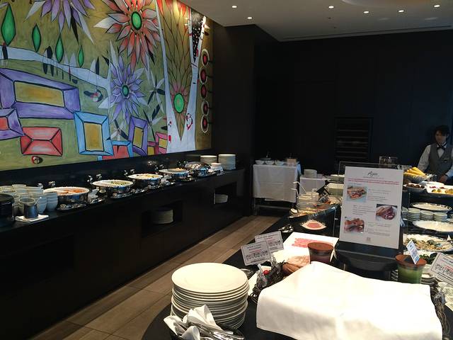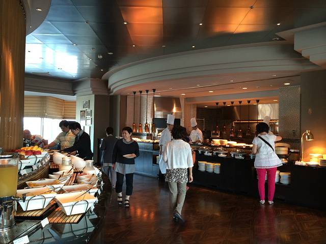 昨天为了去环球影城酒店早饭都没吃,早饭在影城旁得星巴克点的外卖~今天第一次来这个酒店吃早饭,老妈说三家酒店这个早餐最好,品种丰富一些。餐厅在酒店36层,可以观景~
