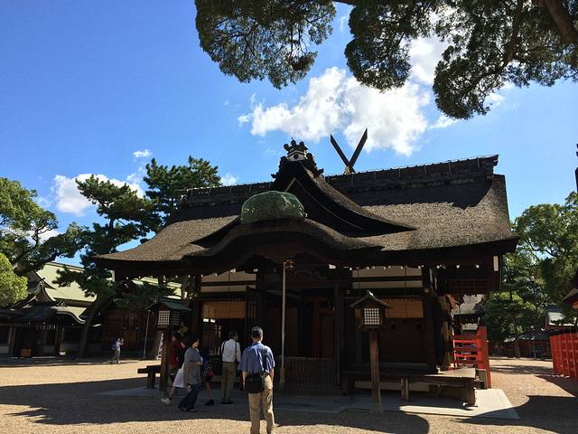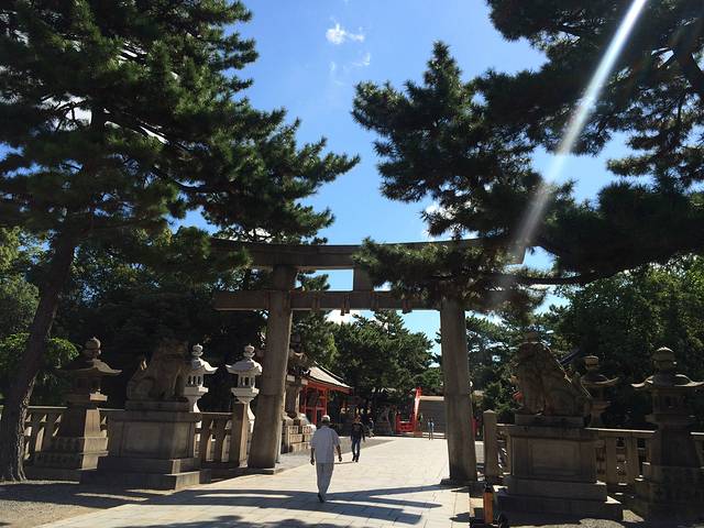 去住吉大社的人不多,很安静,绿树蓝天和红色寺庙~美! 里面还有一只神兔!摸了它可以消病去灾。另外,这里还设有专门的婚礼场所~要是能看到婚礼举行就好了~不过看到有抱着小婴儿来这里做法式的,跟洗礼一个概念吧。