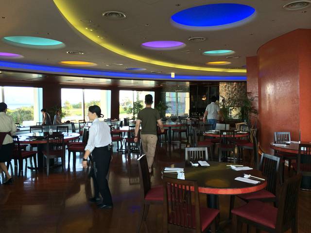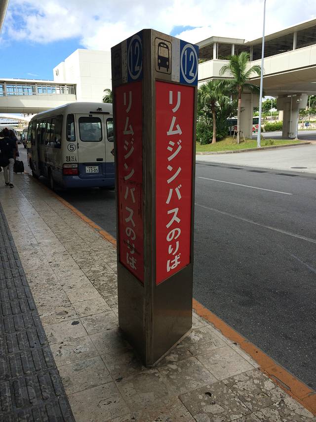 吃了饭,从国内航站楼买车票出发去酒店,去ANA Intercontinental Manza Beach Resort。日本的服务就是注意各种细节,告诉你从买票的地方怎么去到坐车的地方。机场有直达的高速巴士,走的是高速路。告诉巴士有4条线,途径不同的酒店,我们的是线路D,在12号站台。巴士先停靠那霸巴士总站,之后的一站就是我们这次的酒店。路程是一个小时,费用一个人1700日元~做普通的公交也能到,但应该会慢一些。