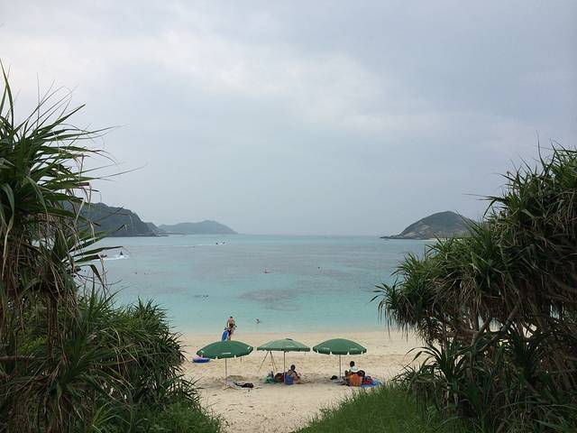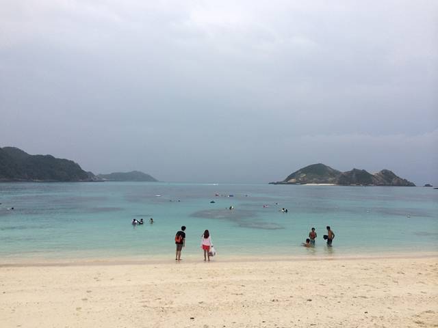 慢船1个小时十分钟到达渡嘉敷岛~岛上有配套的巴士送大家去阿波连海滩,单程400日元一个人。一下船跟着人流就看到一堆车,就去专门到阿波连的巴士就好了。坐车大概10多分钟左右就到了。