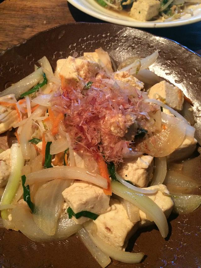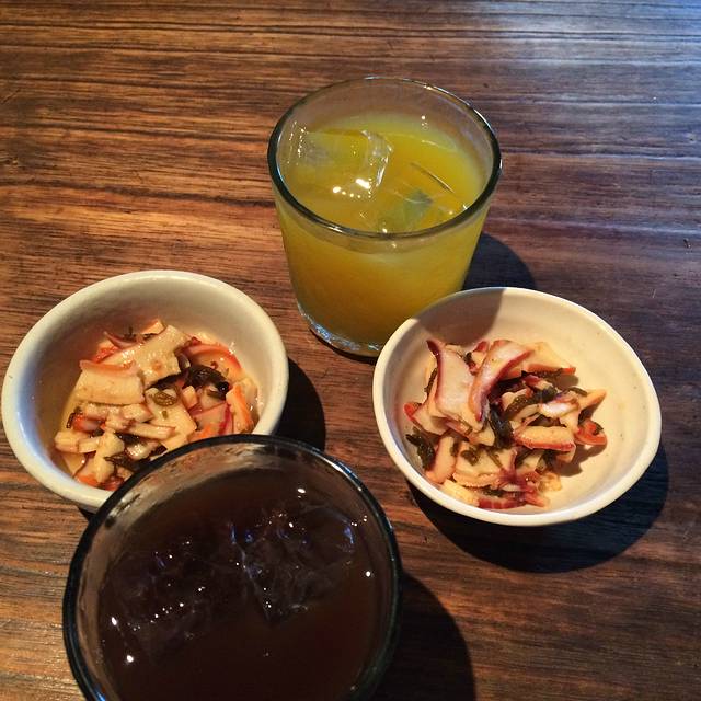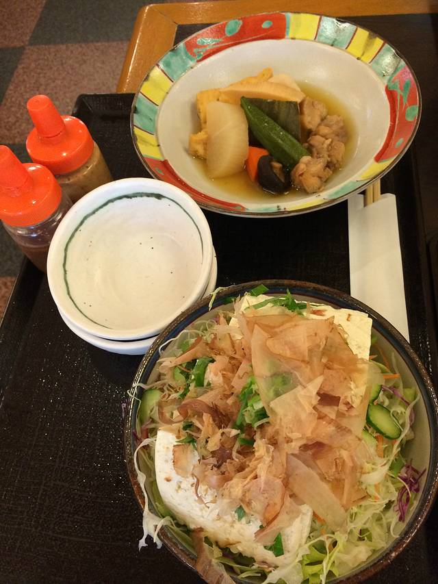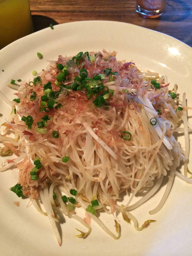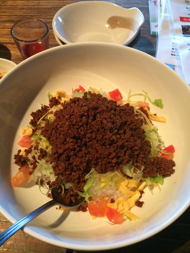 龙须素面最好,就像是国内的炒的细米粉!米饭也好吃,里面有碎牛肉和芝士,和辣番茄酱搭配,有点墨西哥风味!点的豆腐和芥菜,看上去一样的菜似的,做法都差不多,其实点一个就行了,结果就多了一盘菜就吃撑了。。。炸鸡不错,牛肉一般,太硬~这顿吃的很香~外加品尝了黑糖和芒果的梅子酒~芒果的好喝。。。这个餐馆和之前的价位基本一样,就是因为这次有有酒所以贵了一些,这顿总计5710日元。