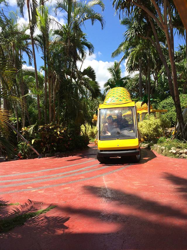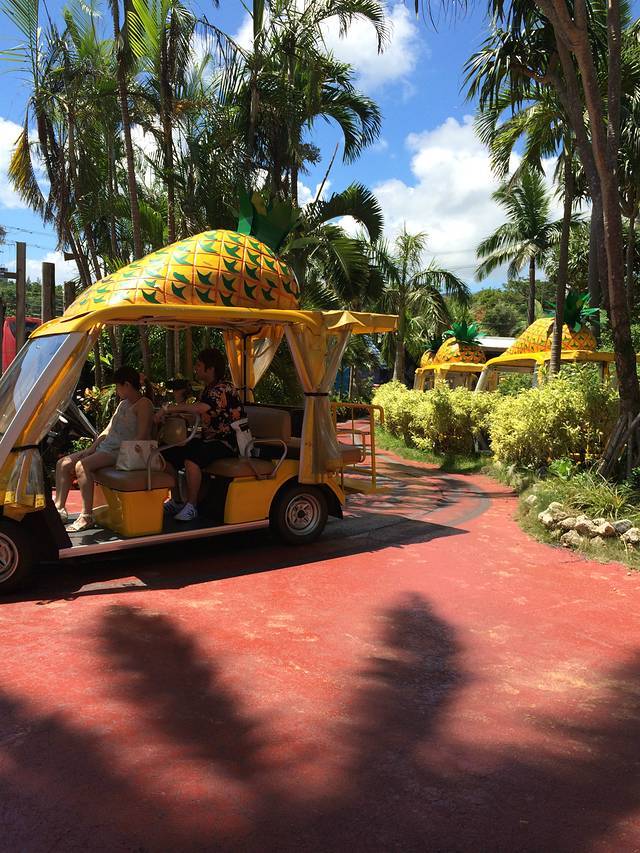 之前还犹豫来不来,事实上证明挺有意思的~坐上自动的小车在园子里溜达一圈,还有中文的讲解~比较有意思的是坐车溜达的时候会告诉你哪里有自动拍照,照片出门的时候可以买来留念,有700日元的也有1200日元的。最后还能尝点菠萝特色食品和饮料~当然少不了的就是推介一堆特产,尝尝那些好吃再买,又被消费了1万多日元。。。