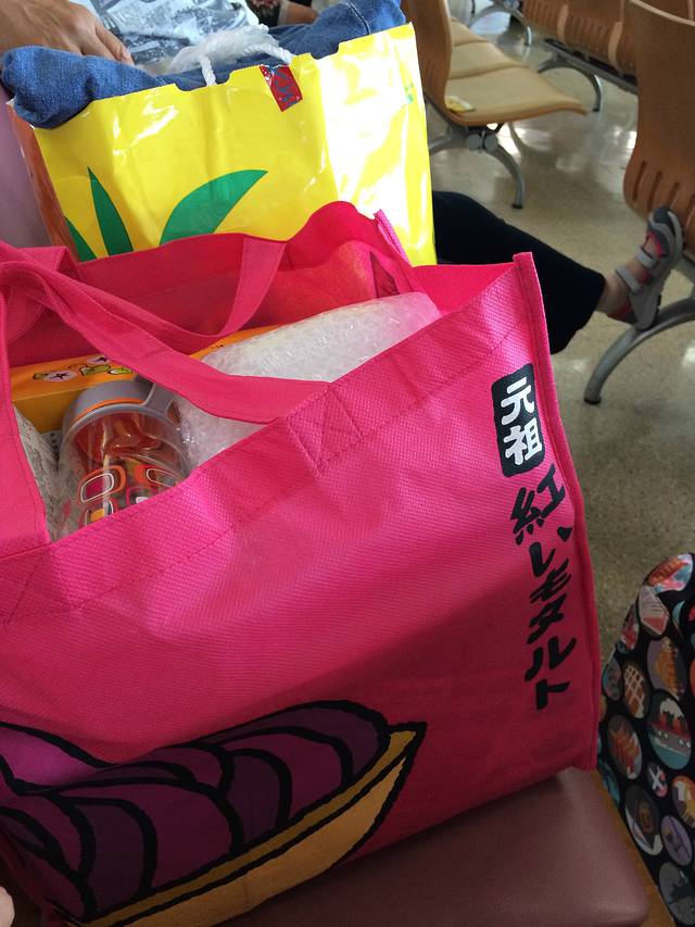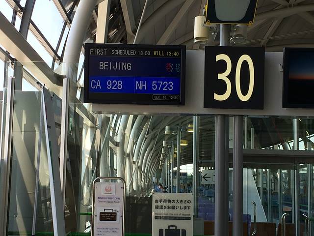 酒店楼下就是大阪南海电车,直接可以坐电车去大阪机场,很是方便。把东西拿到机场,有量重量的,这次买的不少。做的国航是可以托运两个行李,每个行李23公斤。两个行李箱倒来倒去,终于达标了。另外有个箱子我想手提,但不能超过5公斤,之后倒来倒去,我觉得那个日本的工作人员也就睁一眼闭一眼的过去了。还算顺利。