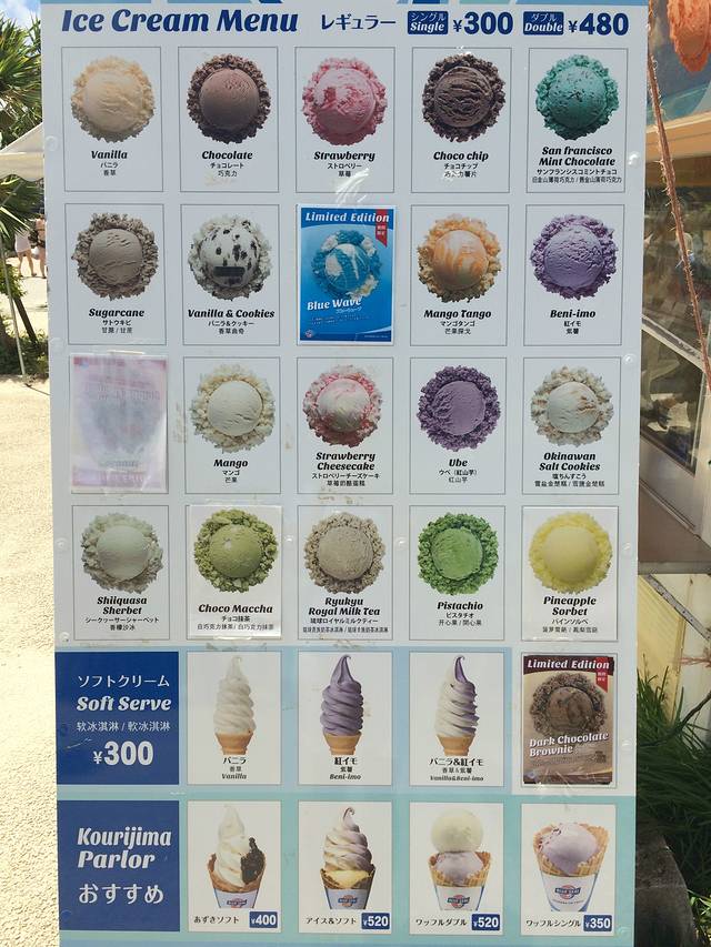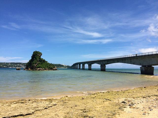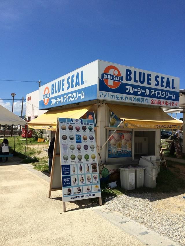第二站:古宇利大桥和沙滩!海水好美,深深浅浅,蓝蓝绿绿~还吃了有名的blue seal~实在太热啦~~买了软冰淇淋甜筒,在这种大热天瞬间融化的节奏。。。