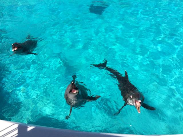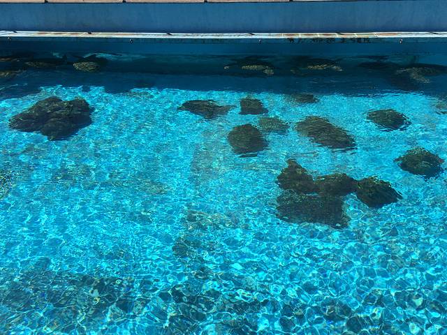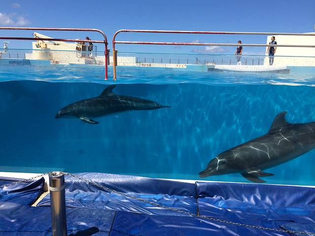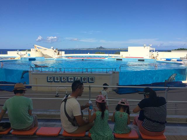 今天又是大太阳!!!晒死了,真是没地儿躲没地儿藏的~~~海洋博公园很大,主要是看水族馆和海豚表演,其他的大家也可以去,必须成园内的bus,否则走死了。园内的bus是200日元一天,可以考虑。老妈腿不好,我们就去了水族馆,去海豚表演场地路上顺道喂食了海豚和参观了海龟池。喂食海豚500日元6条鱼。。。