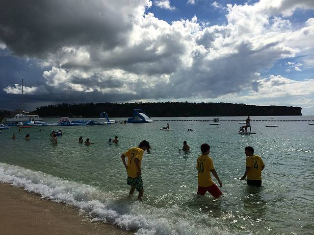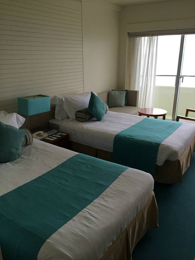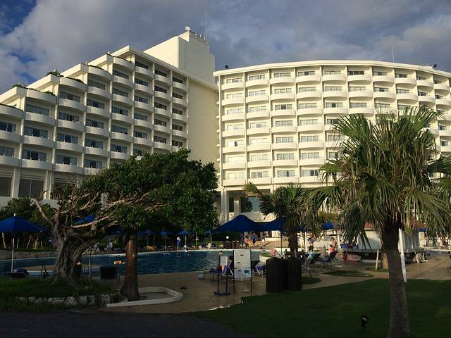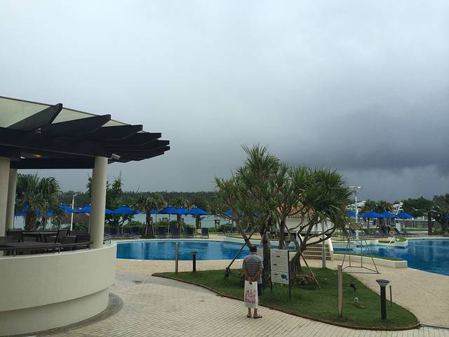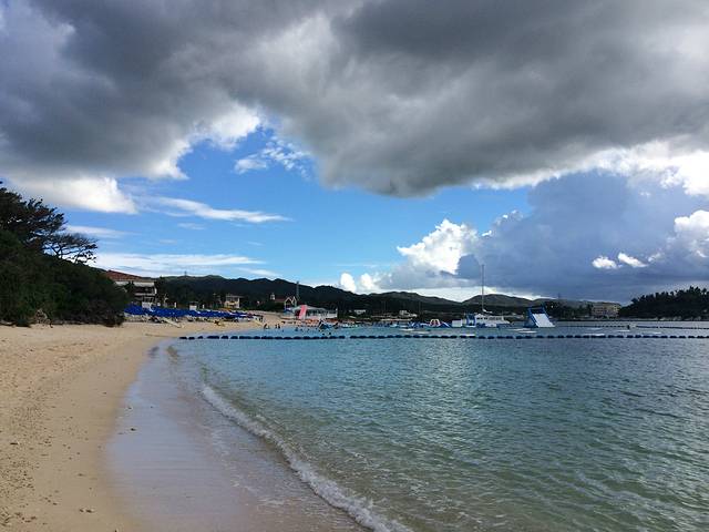 入住酒店啦~ANA Intercontinental Manza Beach Resort,以前王菲张国荣拍的《恋战冲绳》里出现过~房间是海景房,有阳台~~酒店泳池一般,没三亚的万豪希尔顿什么好,沙滩在侧面,还有一个单独的淡水泳池,不过要走个几分钟~ 总体还不错! 出发去海滩!下着小雨啦,不过到了海滩后很快就停了~泡泡海水、泡泡淡水、泡泡热水~