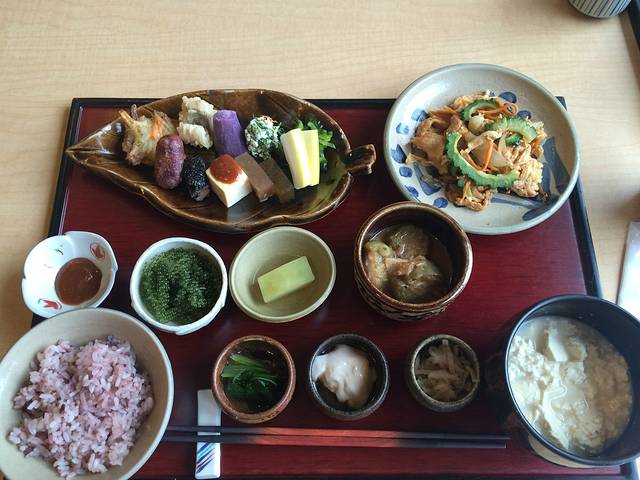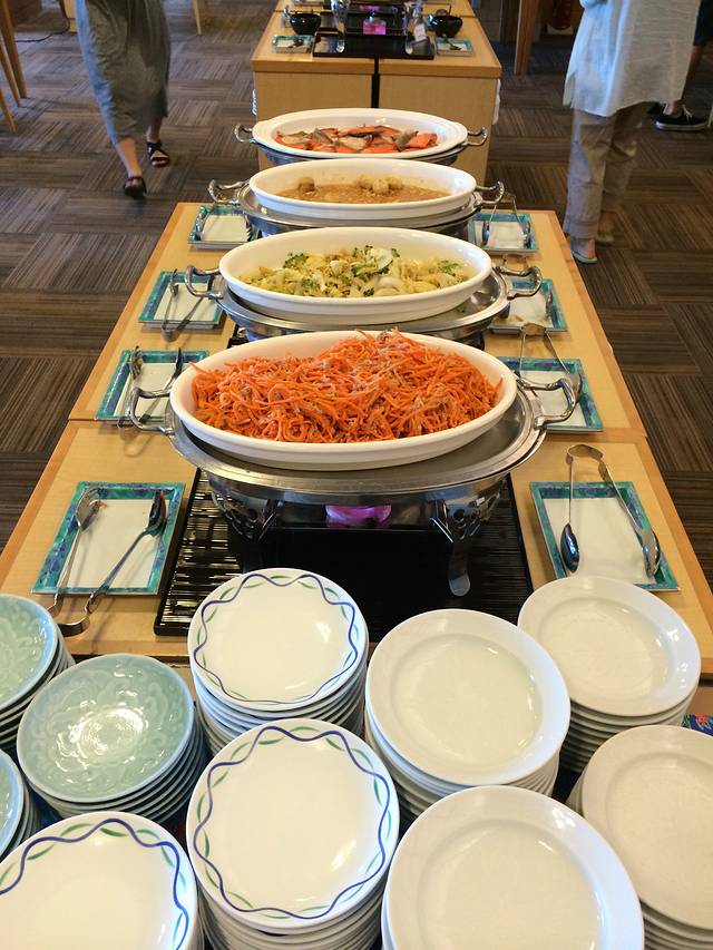 这家新入住的酒店就一家餐厅吃早餐,但也不错,继续日餐。第一次发现日本人也喜欢吃杏仁豆腐,不知道起源是哪里?不过这里的杏仁豆腐很好吃,另外那个花生豆腐也不错,不知道是不是冲绳特产。