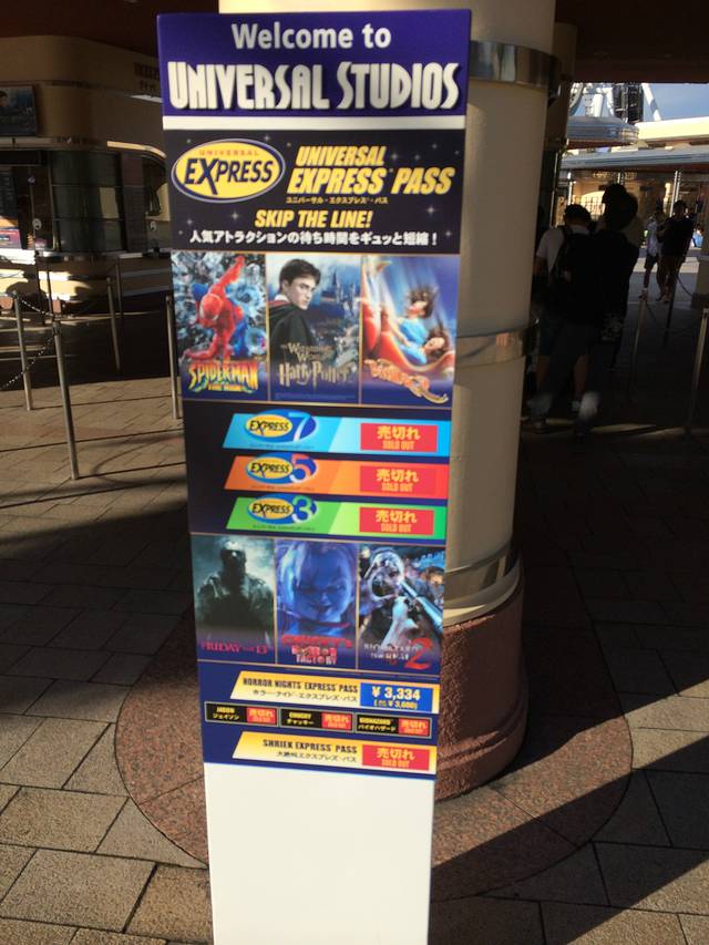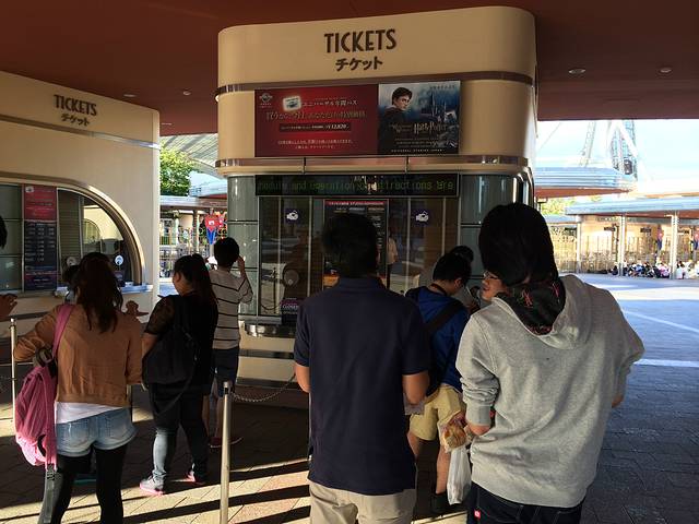 9点半开门,8点开始卖票。一开始售票发现还是有快速票的,可能之前那个牌子是昨天的。可惜,7项快速票已经卖光了,只有5项快速票了。但也可以呀,因为只要买了5项和7项的快速票就一定可以进哈利波特区,5项快速票预约进哈利波特去的时间是10点10分,所以就踏实了。其实我买票是第二个,所以说明7项票是早早就被定没了的。