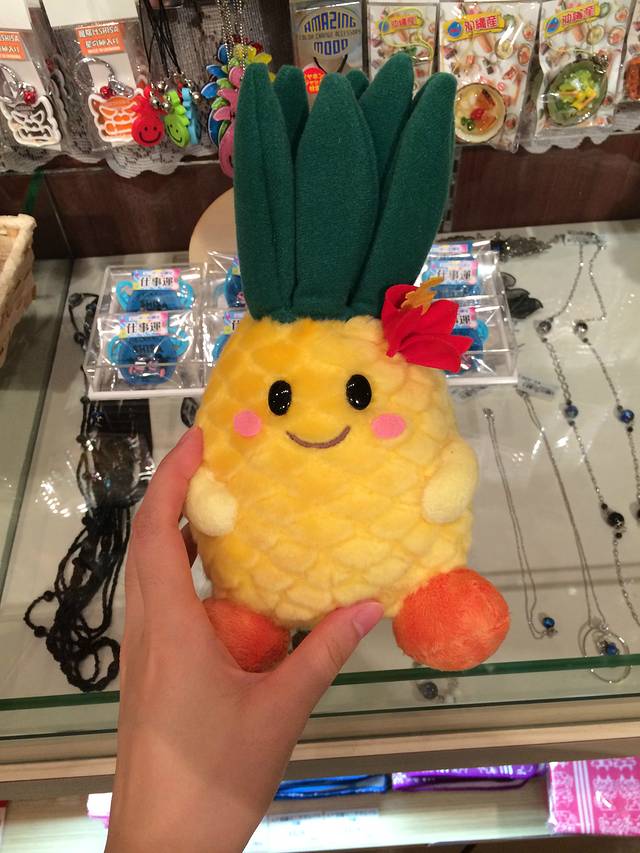 酒店离路边还有段距离,不过酒店有shuttle bus接送。酒店出口就有一个coco!便利店~也算方便!晚饭省了,酸奶招呼上~日本也卖杏仁豆腐,味道不错。不过后来酒店溜达发现也有个便利店,价格可能贵些~~~我自己酒店熟悉一下地形。酒店有礼品店,令郎满目!见过这么可爱的菠萝吗?!还有冲绳吉祥物小狮子~回到房间听到有碰碰的声音,下楼一看实在放花,似乎不是每天都有的哟~~~哈哈