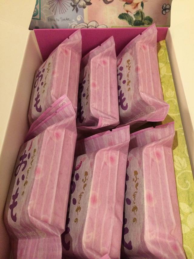 今天中秋,日本的月亮也挺圆的!买来日本果子充当月饼了~这个果子在国际通买的,紫薯味儿浓郁,超好吃!我们一人儿吃了两个…其实都吃了也可以的~配上买的黑豆茶,和老妈开茶话会喽~