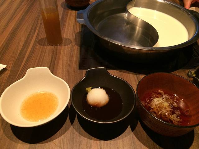 晚饭就近解决了~这家店就在酒店楼下~这算日式涮锅了吧,豆浆锅底!有三种调料…老妈眼大肚子小,点多了,吃撑了!我和老妈都认为肉确实不错~不过要是换个海底捞的调料就赞了,也不会嫌多了~日式的调料还是吃不太惯……
