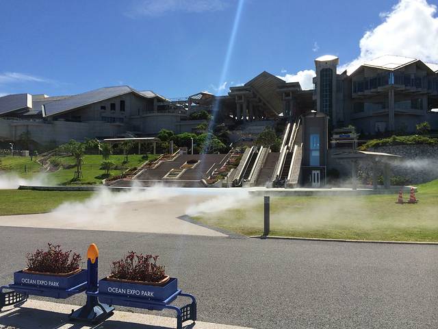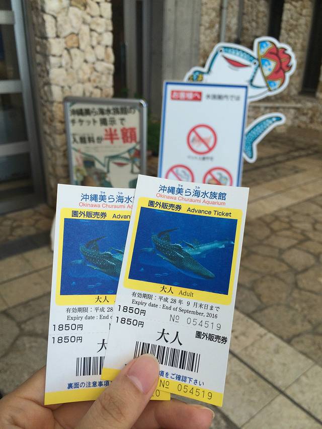 没想到今天包车还是昨天的哪位大叔,可能他主要负责这个酒店的包车一日游之类的吧。今天第一站是海洋博公园,去程就花了1个多点小时。大叔在路上停在一个便利店帮我们买了门票,原价1850日元,在便利店买是1600日元,两个人便宜500日元。如果打表去海洋博大概是9000日元左右,这样往返就要18000日元,包车6个小时是16900日元。所以我们还是选择了包车,这样我们还可以去菠萝园和古宇利大桥看看。
