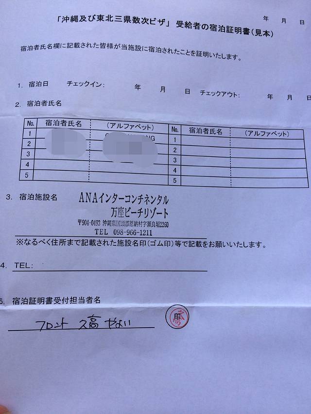 这次旅行社代理办理冲绳三年多次往返的条件就是要在旅行社订酒店订机票,所以价格不具有什么参考性就不写了。不过即便自由行,旅行社的人也帮我们填好了入境卡和申报卡,各种订单复印件等等。。也算挺贴心的服务。。。