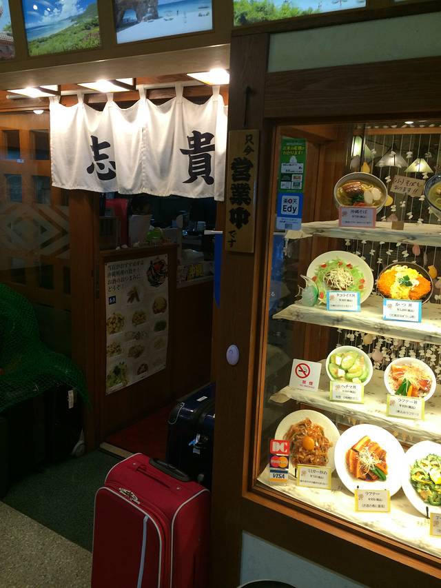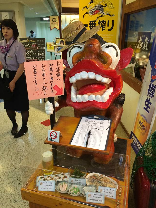 国内航站楼四层有几个餐厅,选了个有炸猪排的。门口写的啥看不懂,猜着是要登记等位~ 所以也登了记。事实上也猜对了,确实要先登记在等叫位。日本的餐厅一般都要人领位的,我觉得这样挺好,有秩序,不会蜂拥而至乱七八糟。我们选了人气第一和第四的套餐!猪排很香,就是硬了点,没有之前在京都吃过的那个和幸猪排好吃。冲绳特色红烧肉不错,软嫩!
